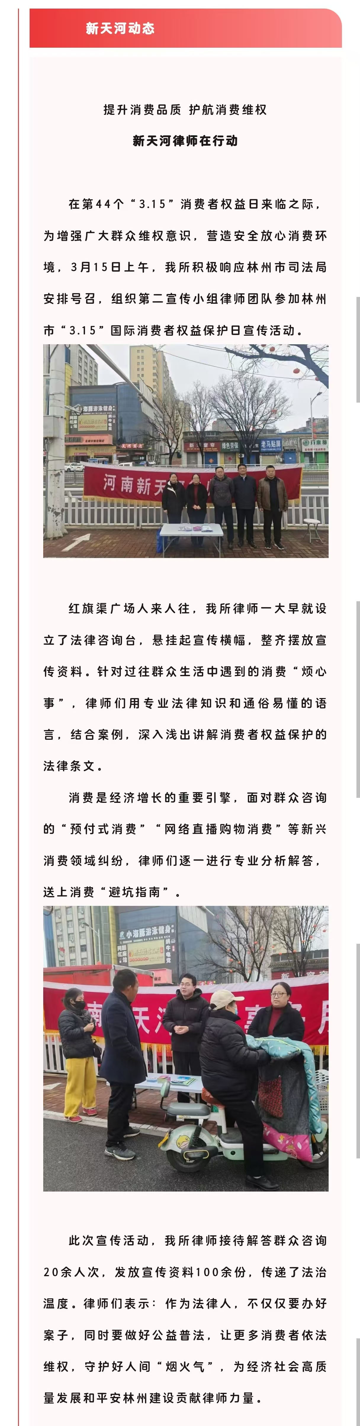 提升消费品质 护航消费维权 新天河律师在行动